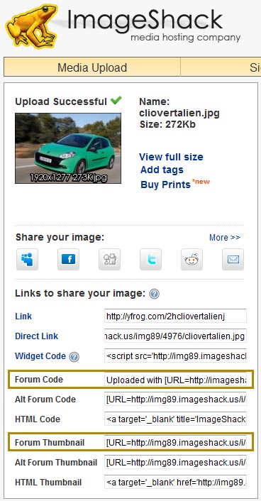 imageshack te donne aussi la possibilité de copier directement le lien qui va bien : soit forum code pour afficher l'image en taille réelle ou thumbnail pourafficher une vignette cliquable (comme le montre cette image :
